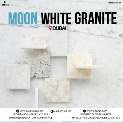 Discover the timeless beauty of Moon White Granite, now available in Dubai through Dollar Exim. Our granite offers elegant aesthetics, long-lasting durability, and high resistance to heat and scratches—ideal for both residential and commercial projects. Backed by Coneio’s simplified compliance and secured global logistics, we ensure smooth cross-border trade and delivery. Reach out today for seamless granite exports with global market access.